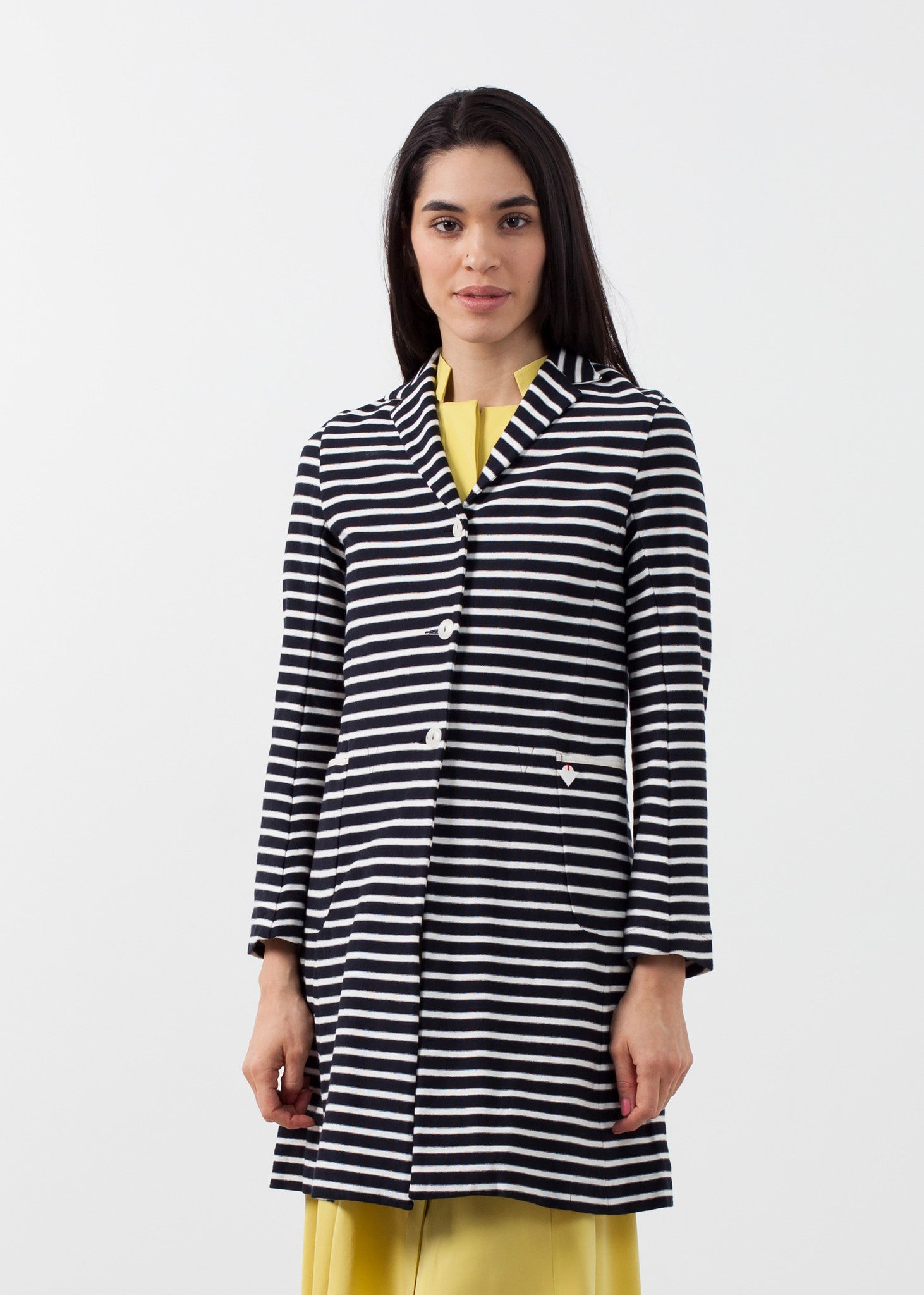 The Halo is a classic trench with the comfort of cotton. Three button placket closure. Exterior pockets at side. Fully lined. Yoshi Kondo. Color White. 100% Cotton, Lining 100% Cotton. Made in Romania.