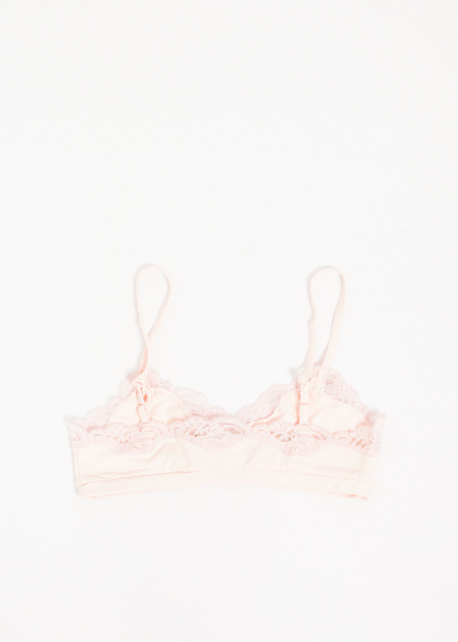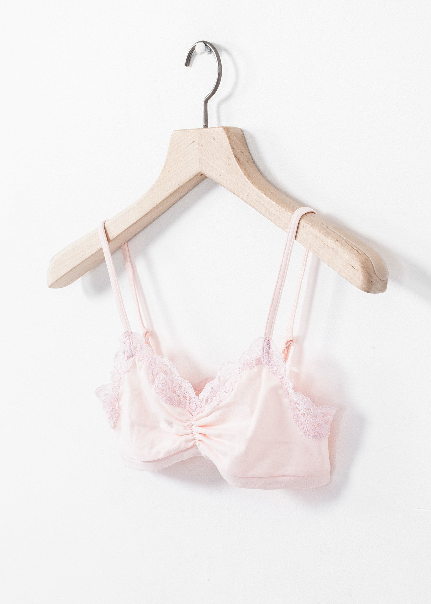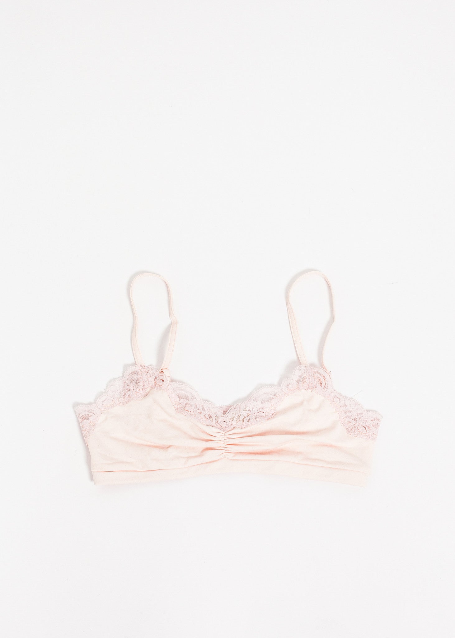 The Ruche Bra from Only Hearts offers a delicate fit for your everyday needs with a fun lace trim. Color Barely Pink. 90% Nylon, 10% Lycra. Made in U.S.A.