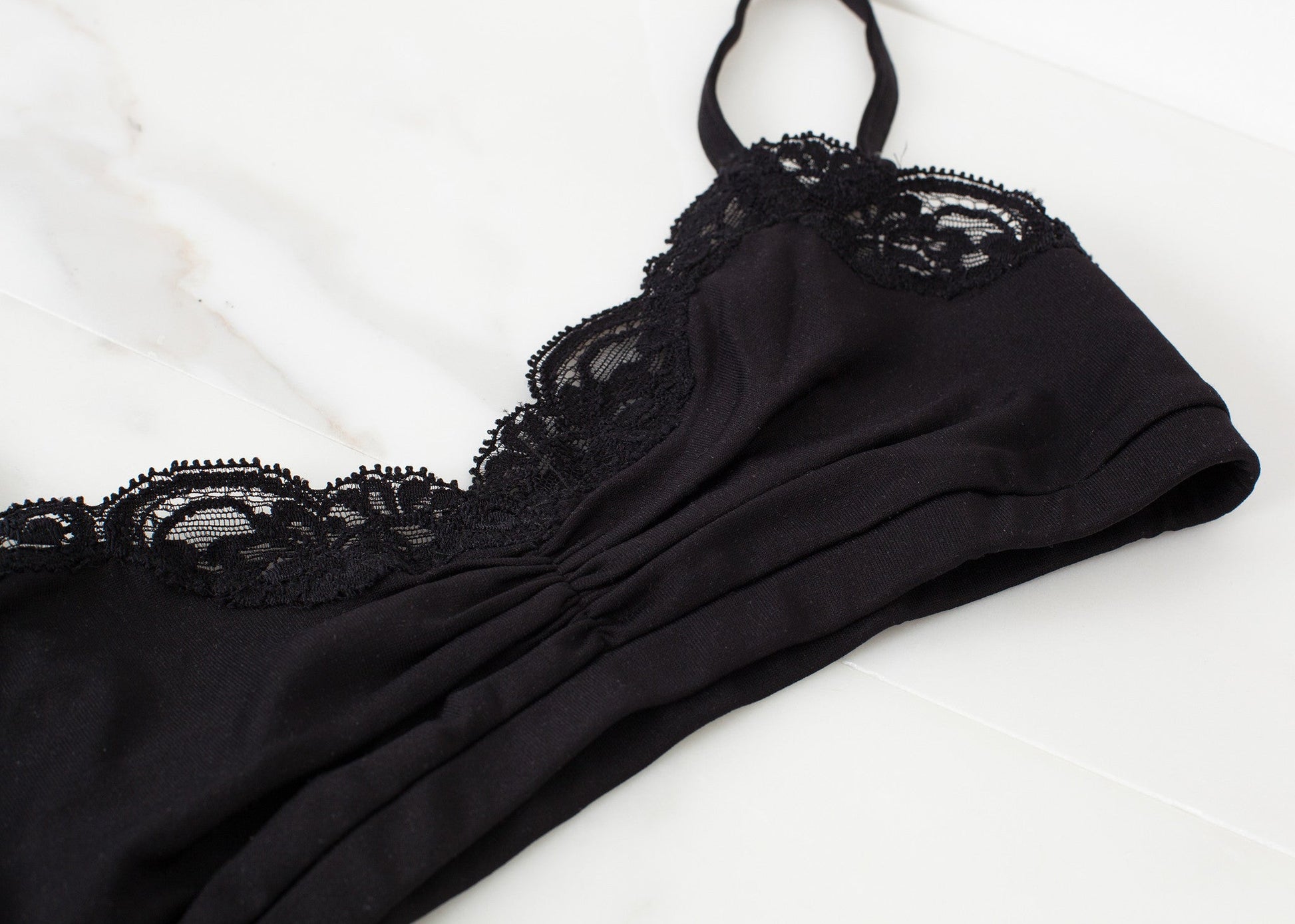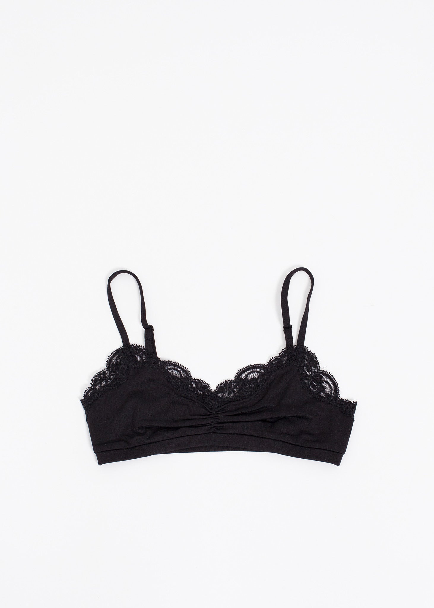 The Ruche Bra from Only Hearts offers a delicate fit for your everyday needs with a fun lace trim. Color Black. 90% Nylon, 10% Lycra. Made in U.S.A.